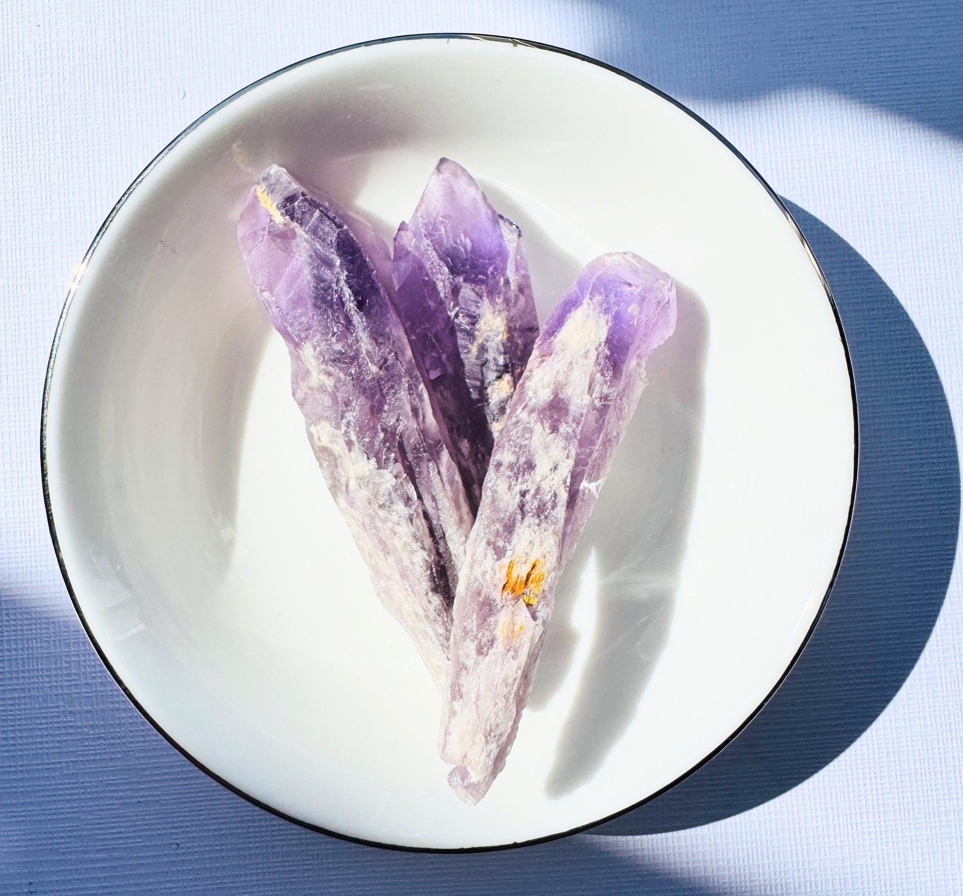 Amethyst Root Points carry the same calming and protective energy of Amethyst but with an added grounding quality from their raw base. They are believed to ease stress, support restful sleep, and deepen spiritual connection. Root points are especially valued for meditation and energy work, as they both anchor and channel energy.