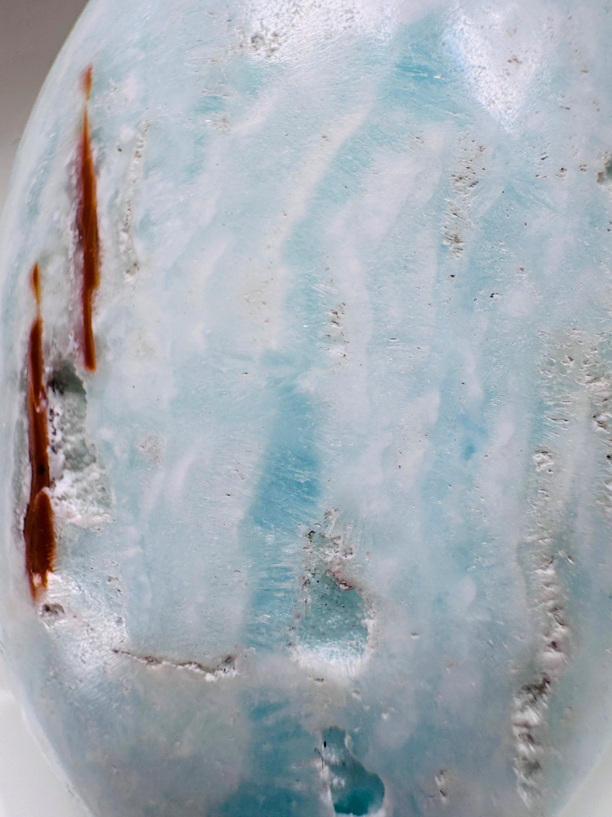 Caribbean Calcite is a soothing stone of calm, clarity, and spiritual awakening. Its soft blend of pale blue and white, often with brown inclusions, resembles tranquil ocean waves. It is believed to ease stress, quiet the mind, and support restful sleep while deepening meditation and expanding spiritual awareness.