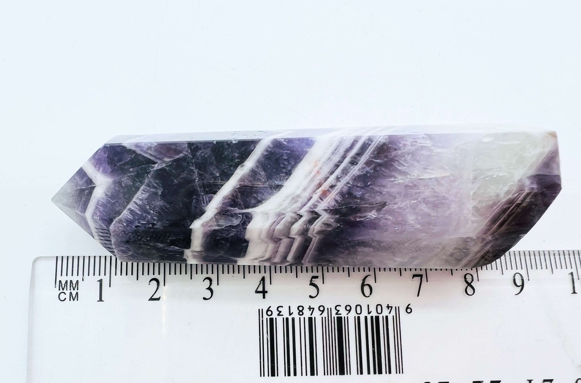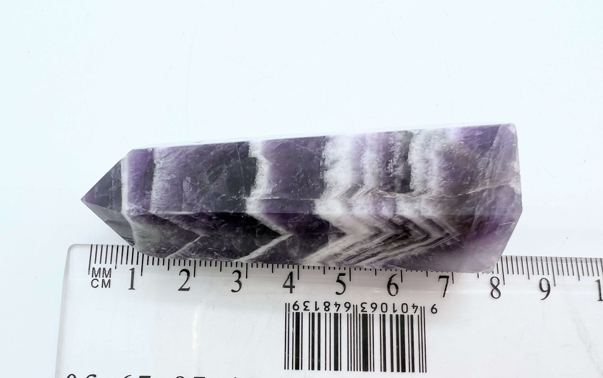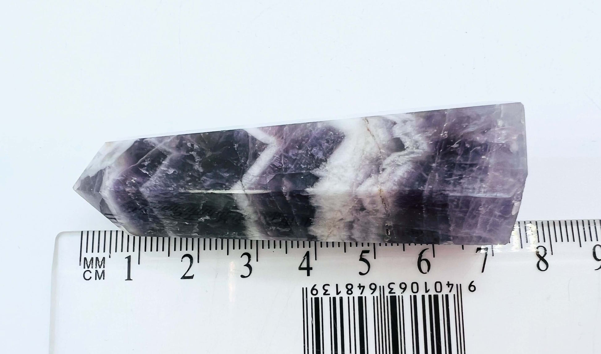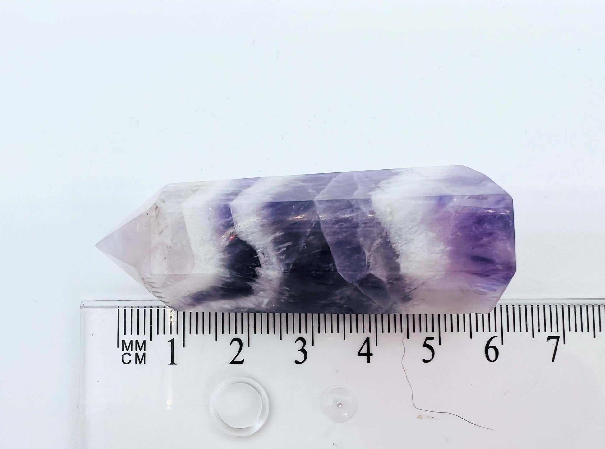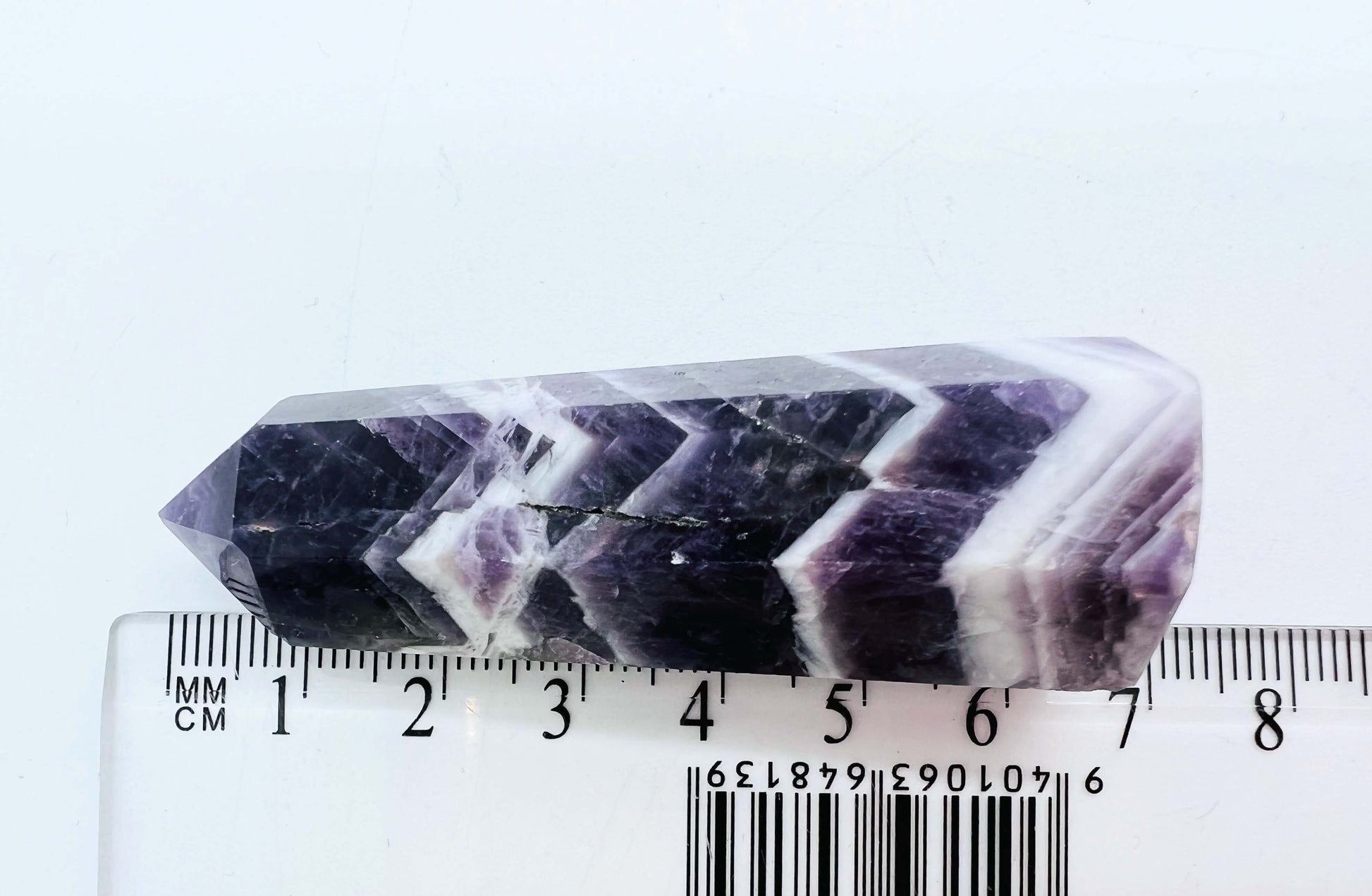 Chevron Amethyst, also known as Dream Amethyst, is a unique blend of Amethyst and White Quartz. Its striking chevron or banded patterns combine the calming, spiritual energy of Amethyst with the clarity and amplifying qualities of Quartz. This stone is believed to deepen meditation, enhance intuition, and provide protection while also helping release negative patterns.