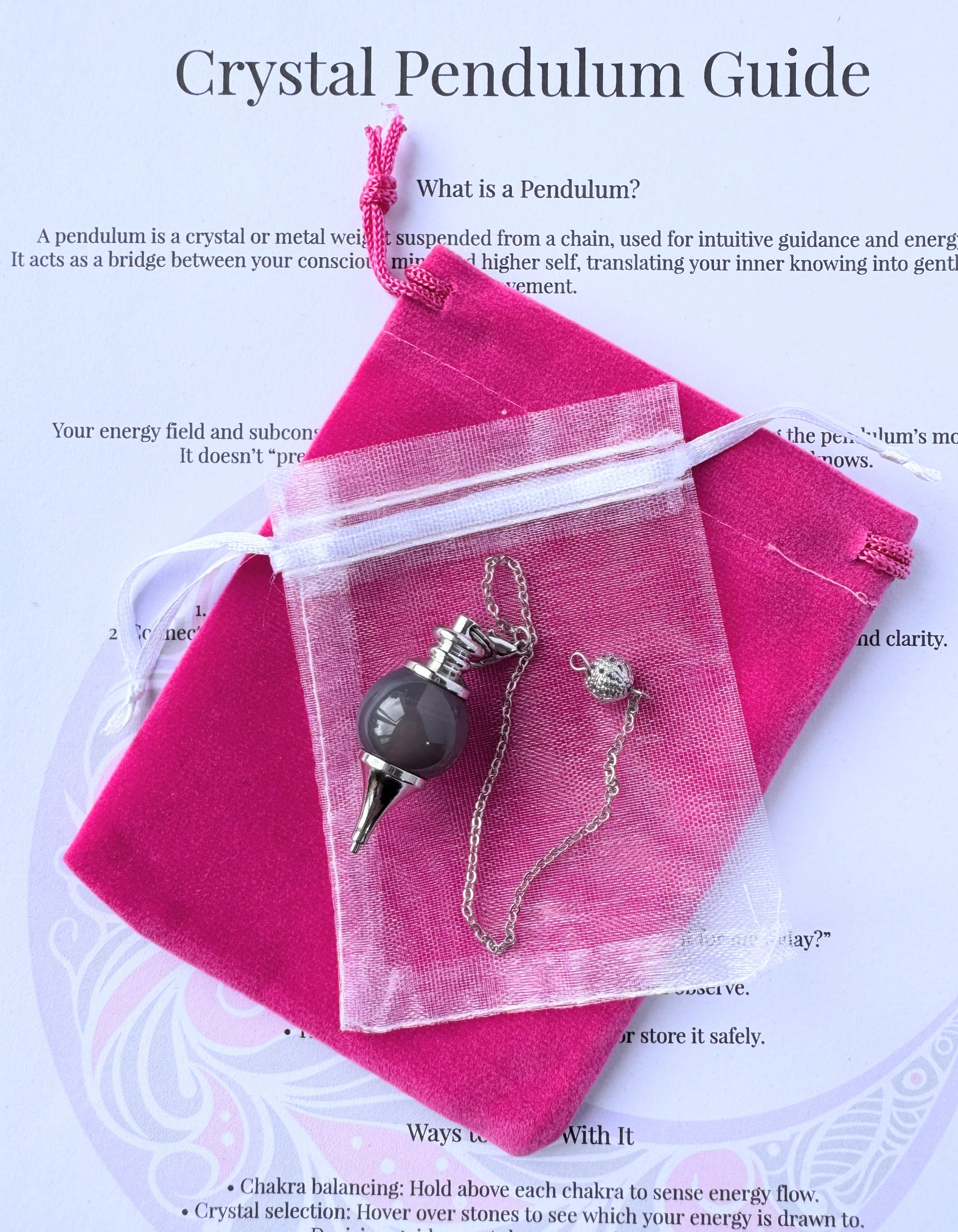 Crystal Ball Shape Pendulum - Complete with Instructions and Pouch