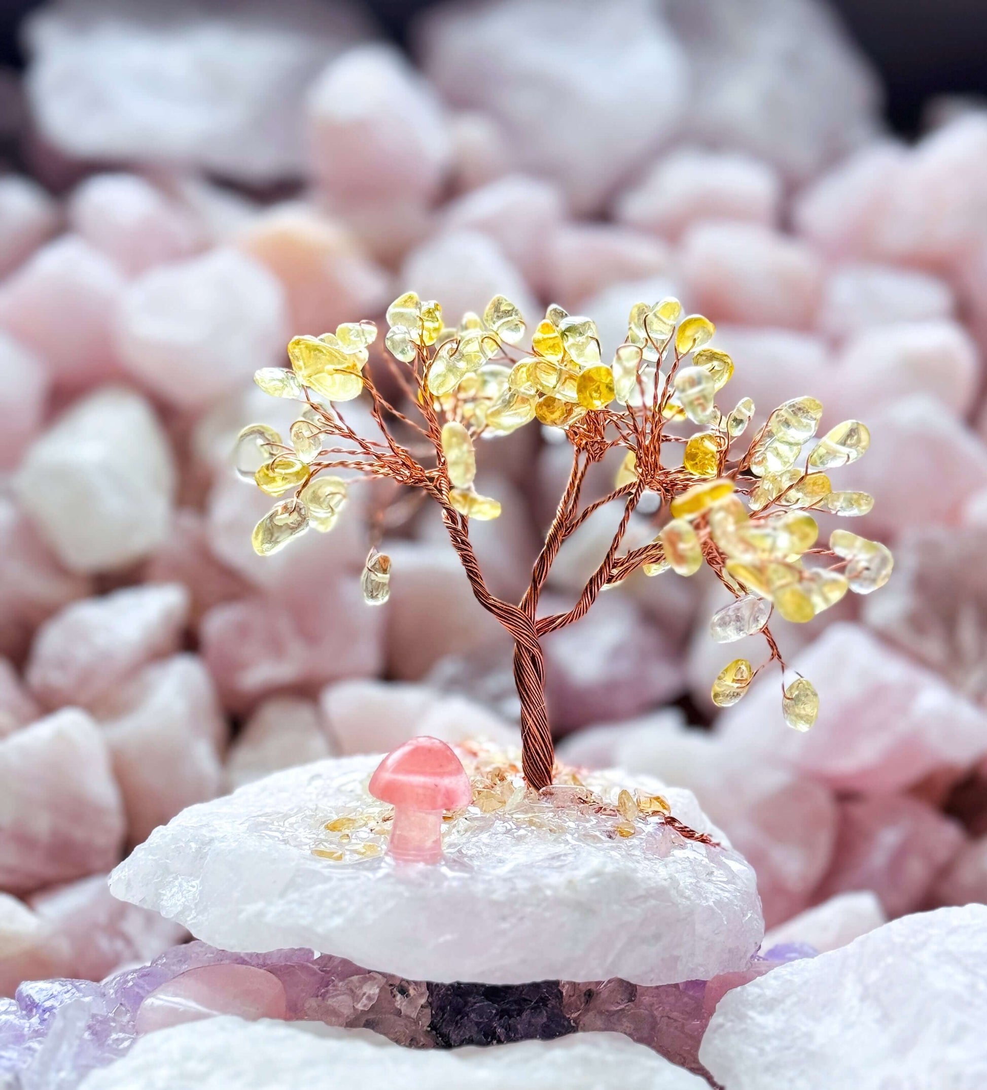 Handcrafted Citrine Crystal Tree on Rose Quartz Base
