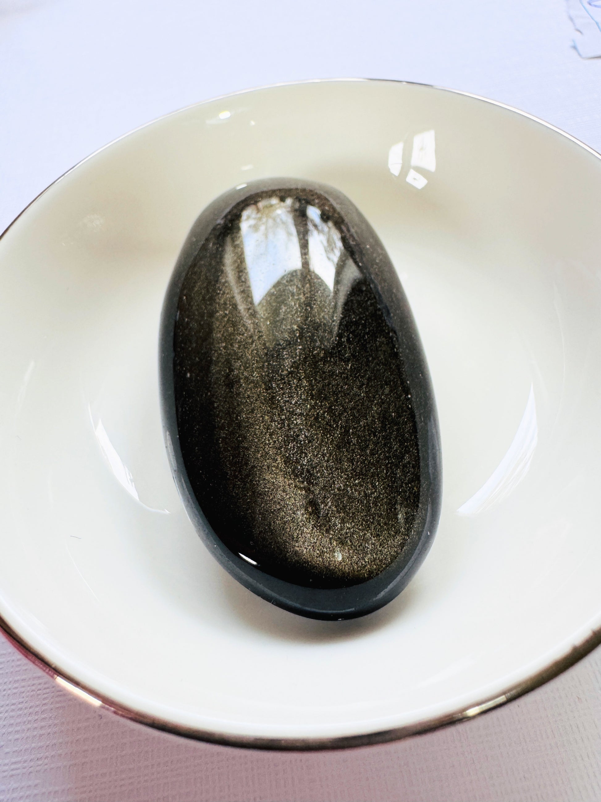 Gold Sheen Obsidian is a protective and empowering stone. It is believed to reveal hidden truths, dissolve negativity, and strengthen personal power. Its golden shimmer is said to inspire confidence, clarity, and focus, making it a supportive stone for setting intentions and manifesting goals.