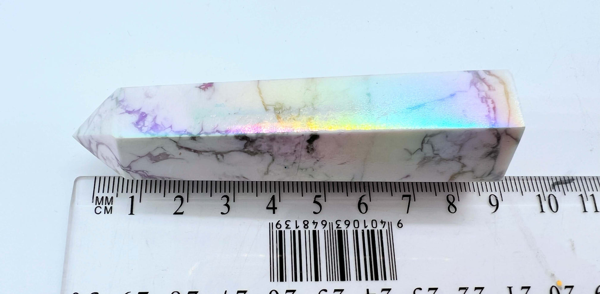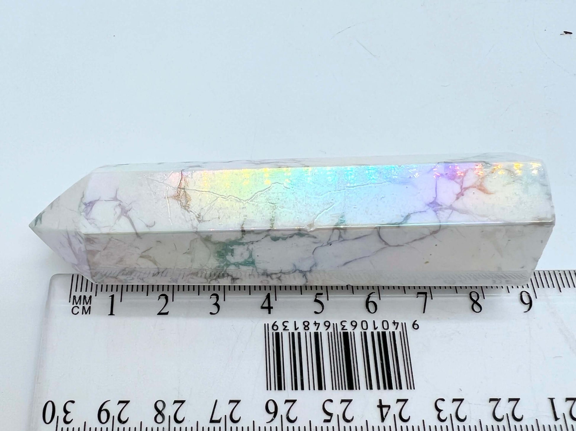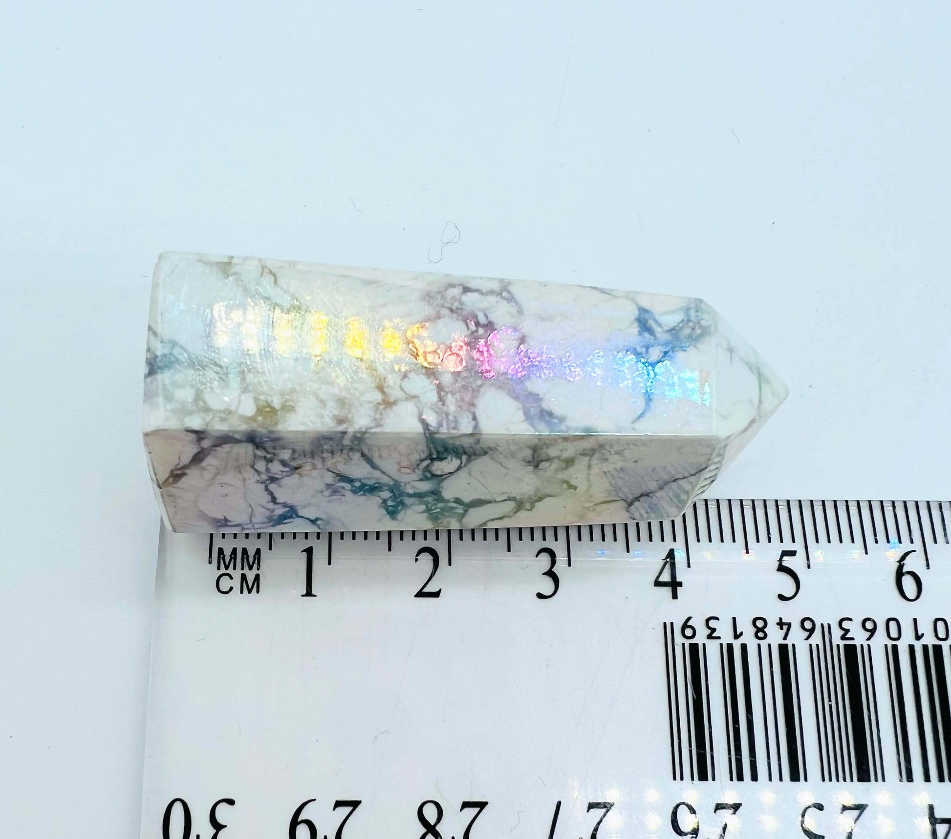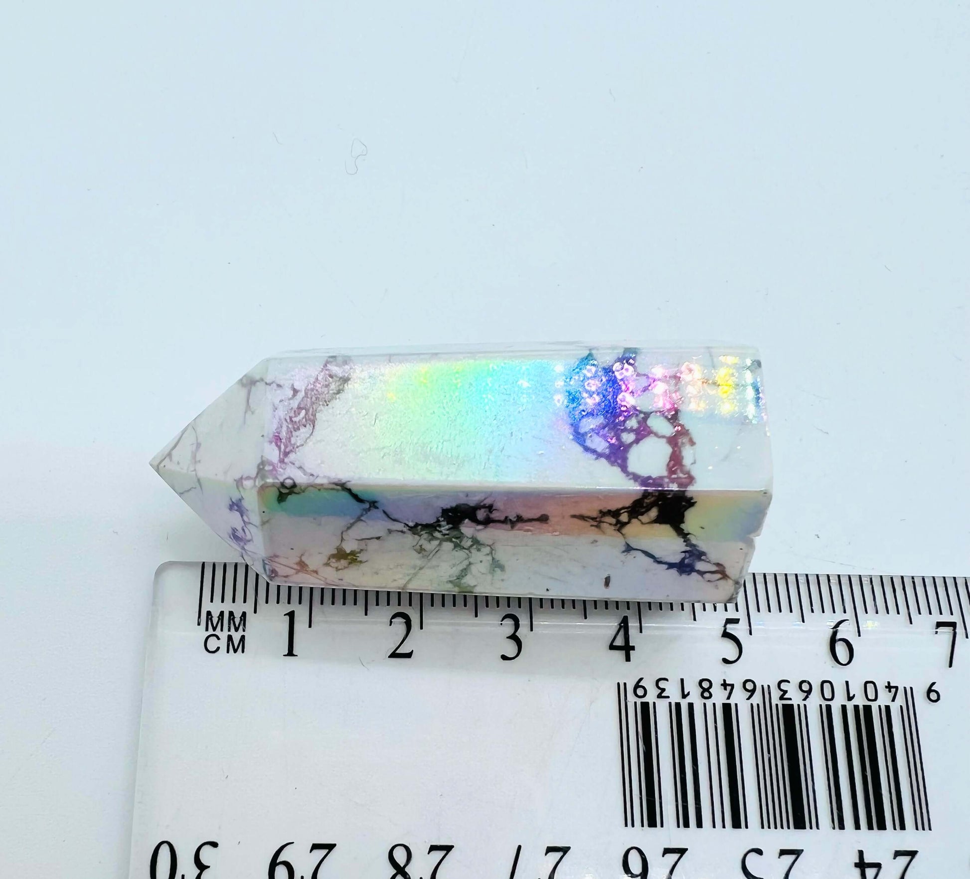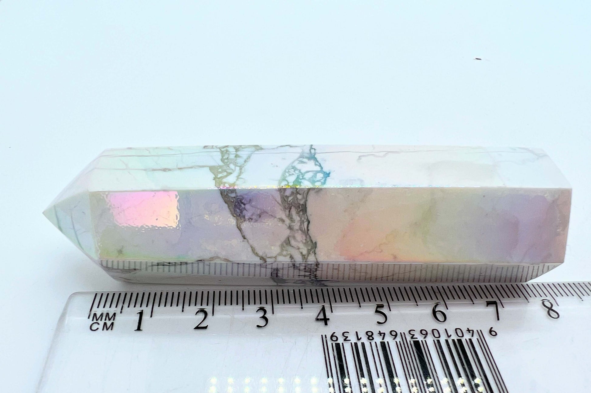 Aura Howlite combines the calming energy of natural Howlite with the uplifting, high-vibration energy of its shimmering aura coating. It is believed to quiet the mind, ease stress, and promote patience while also encouraging joy, creativity, and spiritual connection. This stone supports emotional balance, restful sleep, and a positive outlook.