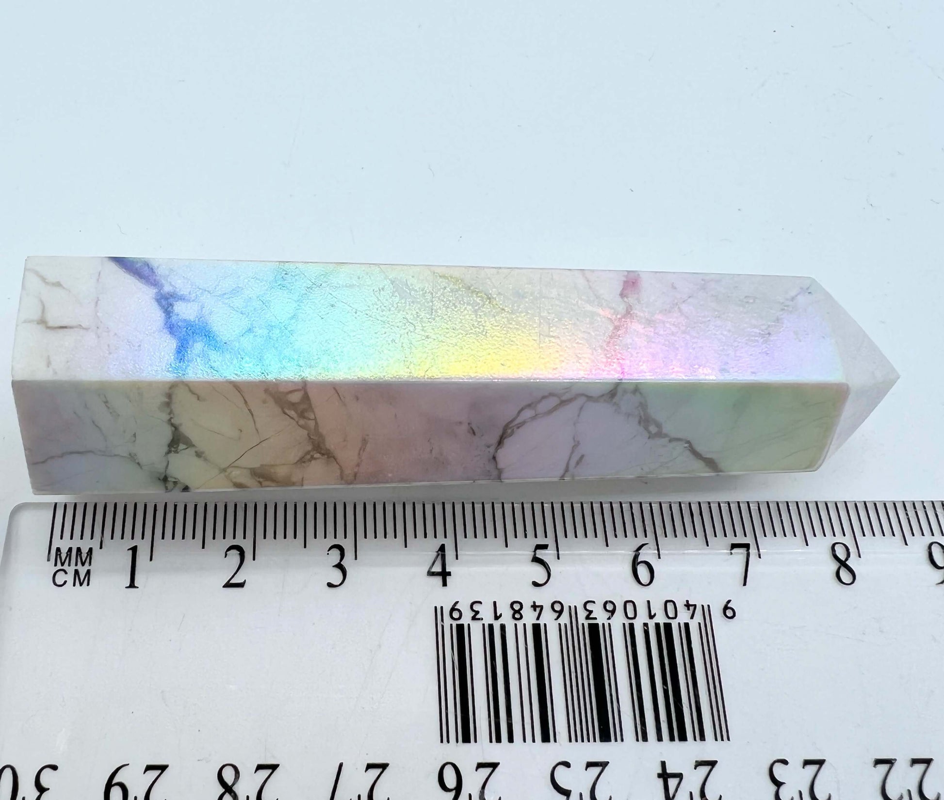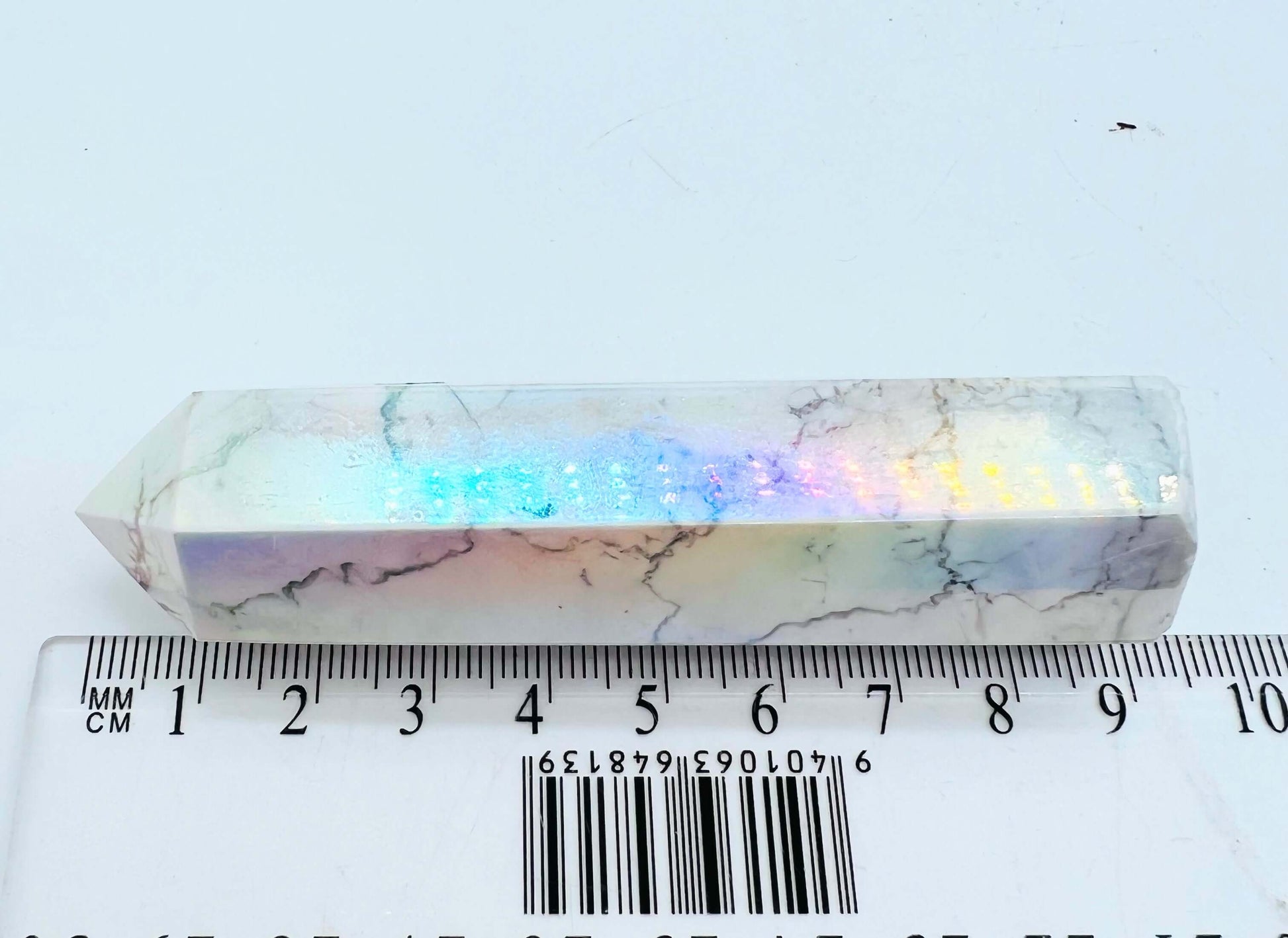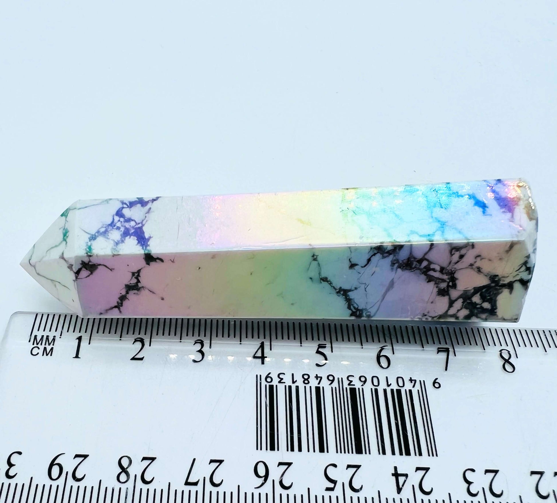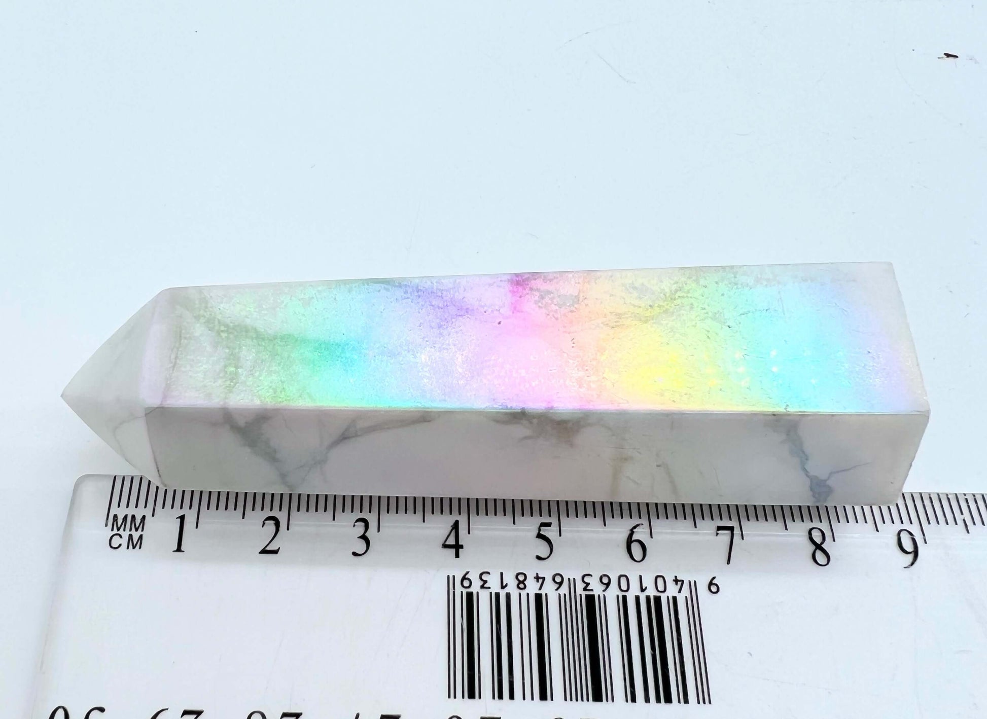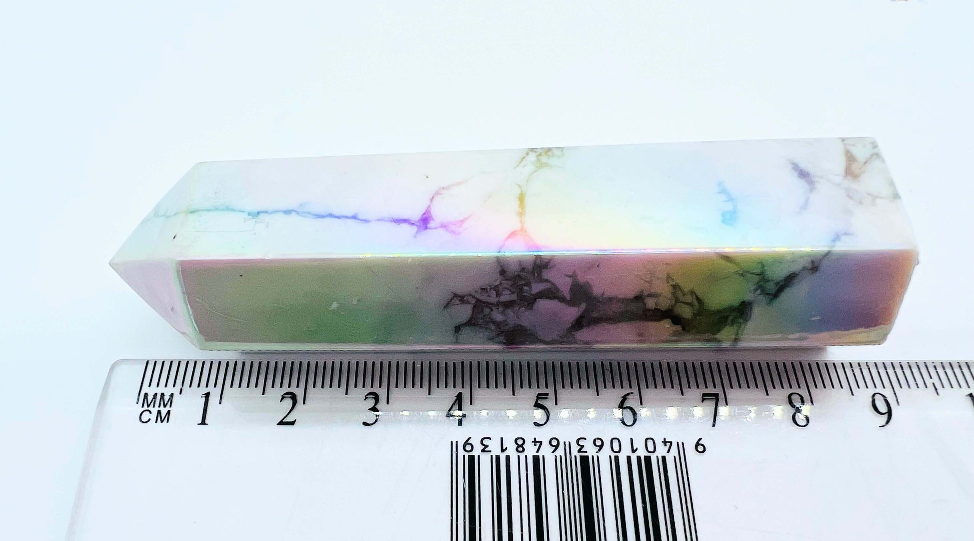 Aura Howlite combines the calming energy of natural Howlite with the uplifting, high-vibration energy of its shimmering aura coating. It is believed to quiet the mind, ease stress, and promote patience while also encouraging joy, creativity, and spiritual connection. This stone supports emotional balance, restful sleep, and a positive outlook.
