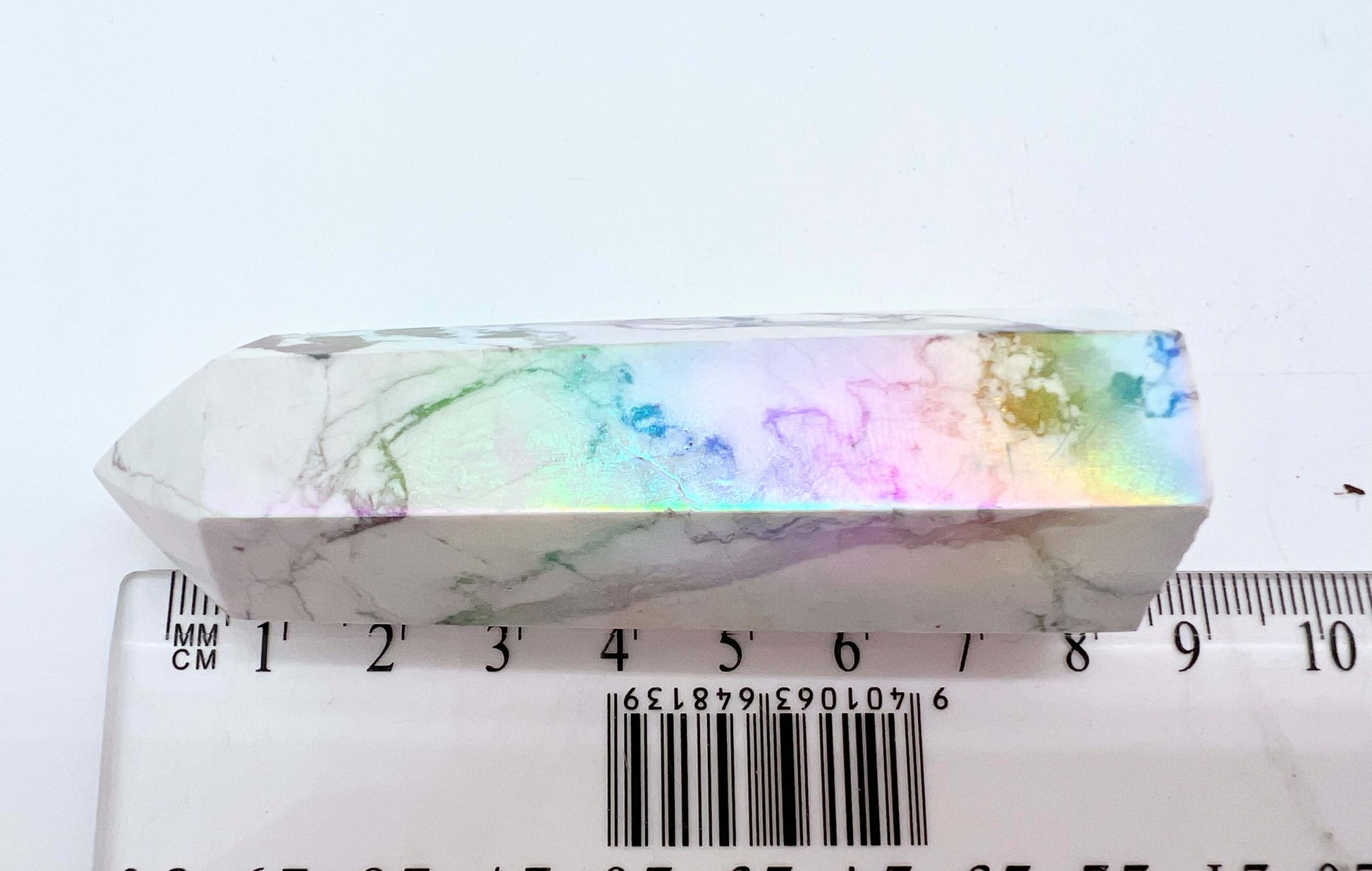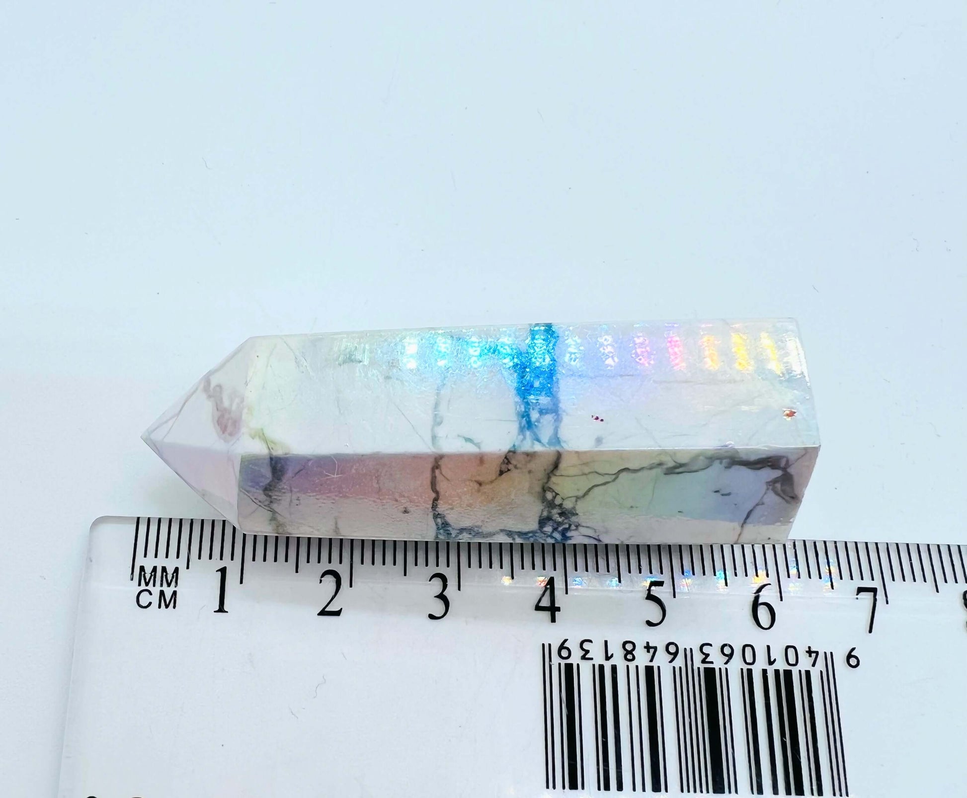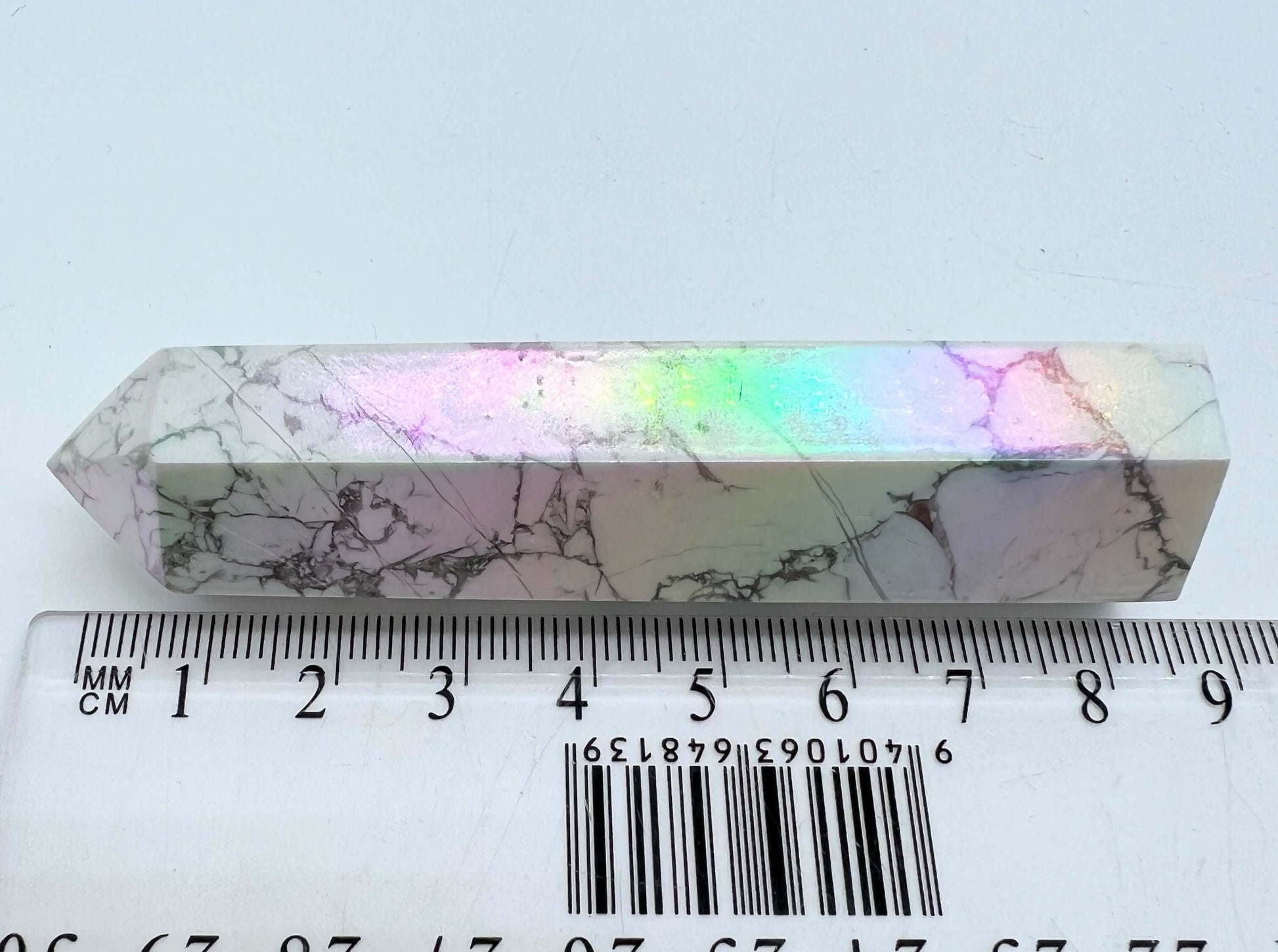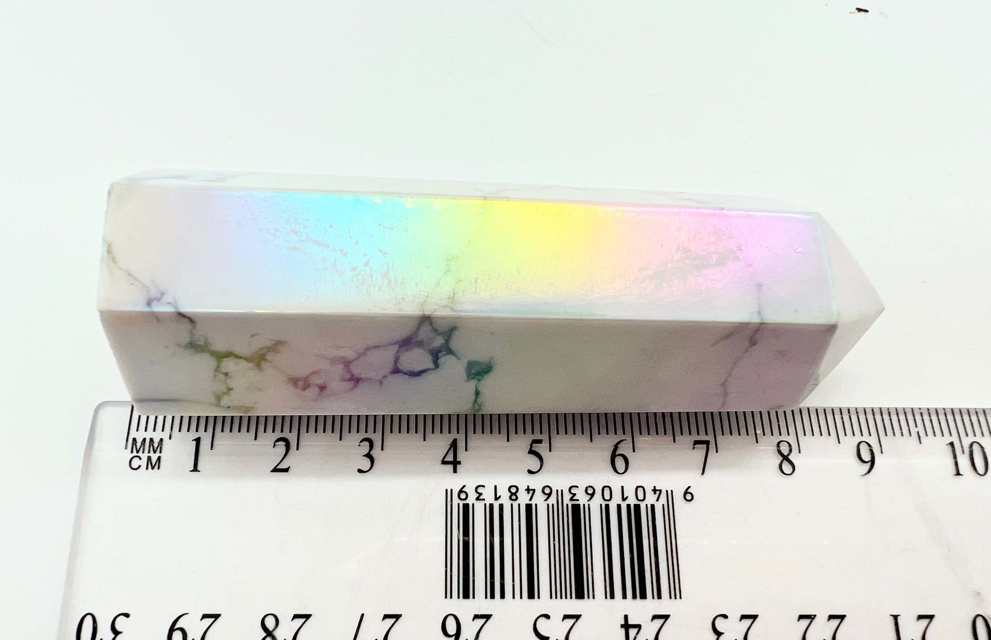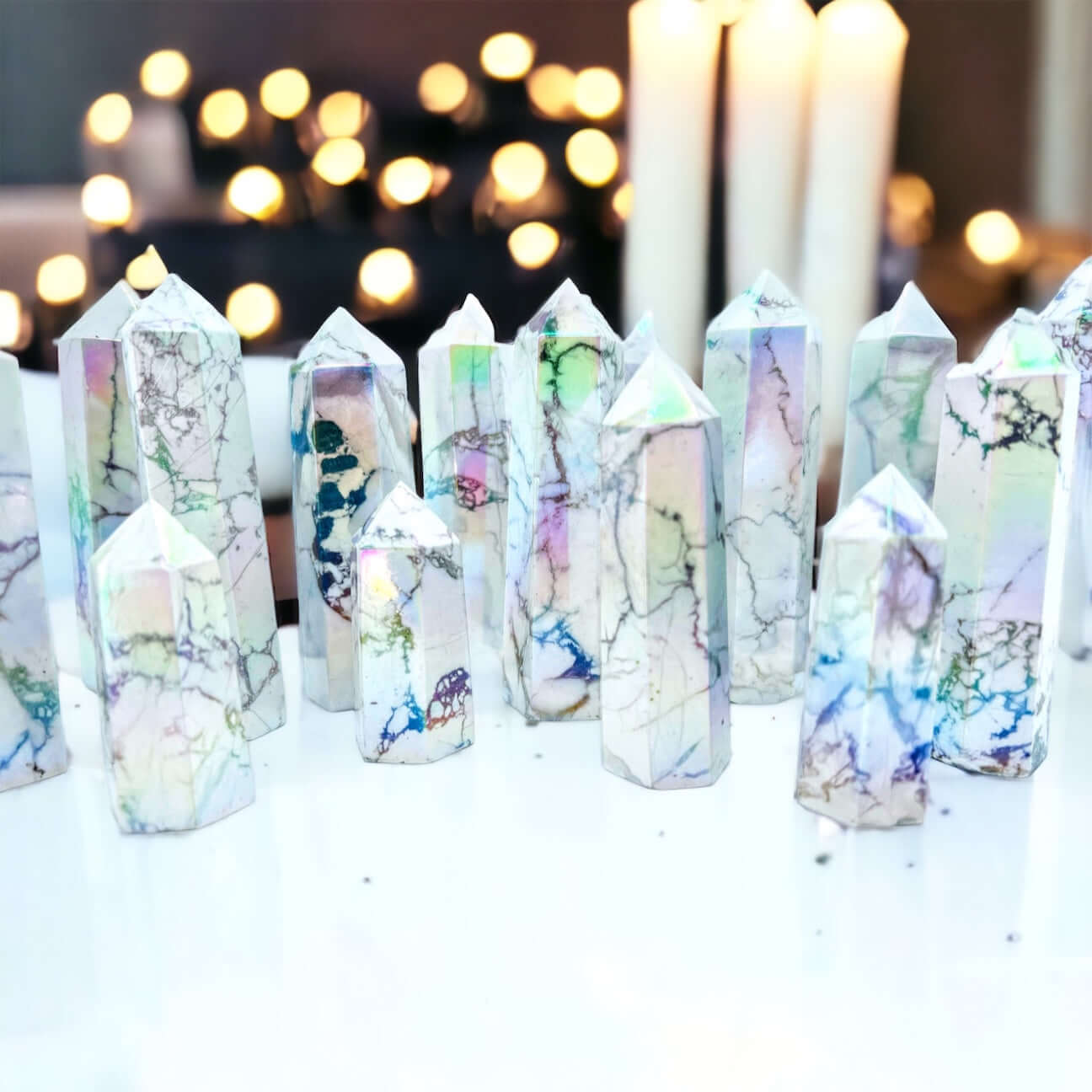 Aura Howlite combines the calming energy of natural Howlite with the uplifting, high-vibration energy of its shimmering aura coating. It is believed to quiet the mind, ease stress, and promote patience while also encouraging joy, creativity, and spiritual connection. This stone supports emotional balance, restful sleep, and a positive outlook.