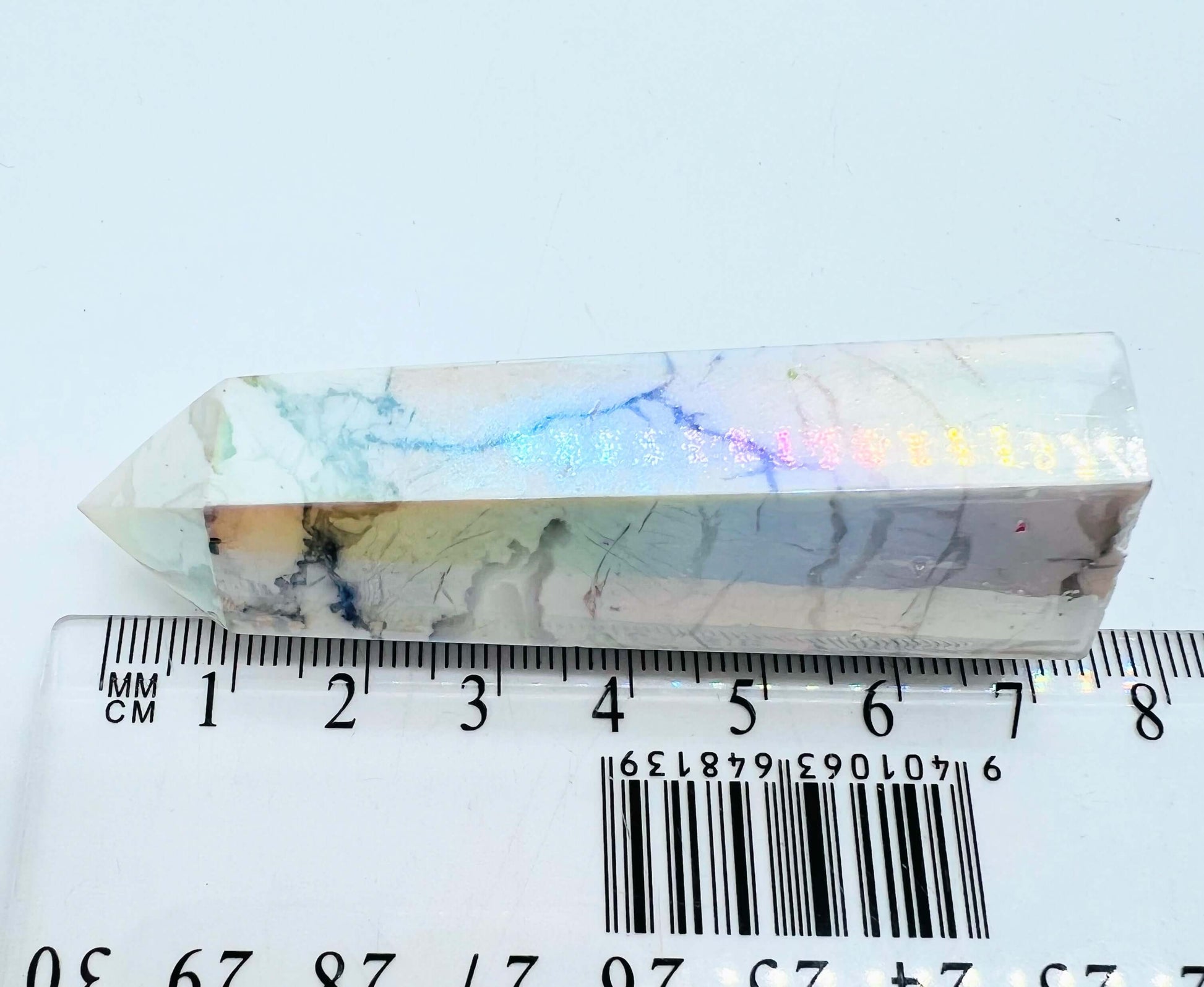 - Coated with precious metals to give its iridescent rainbow aura sheen.