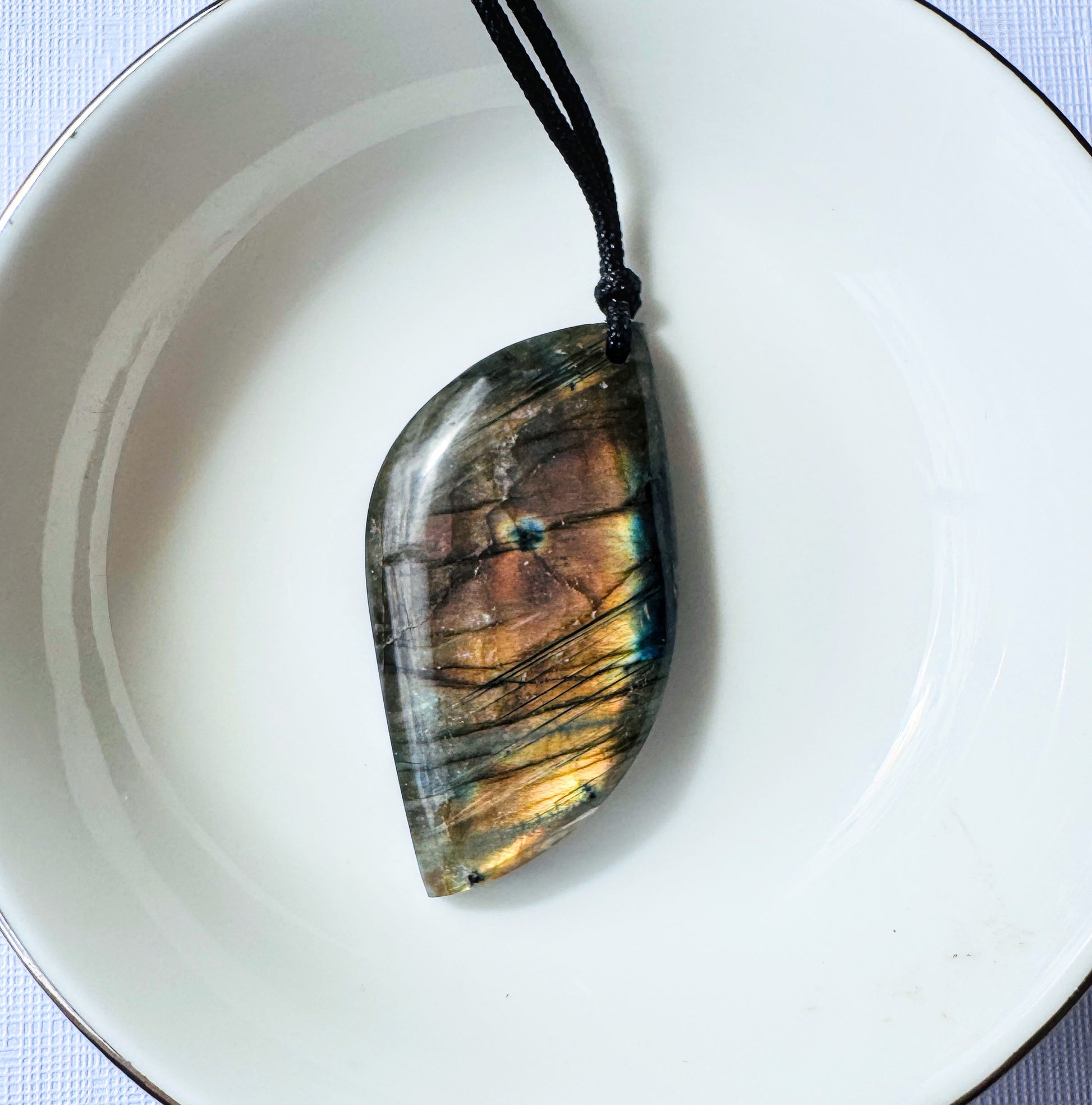 These cut and polished labradorite pendants are ajustable. The first 2 pendants are smaller than the others, there are photos with a ruler for sizes.