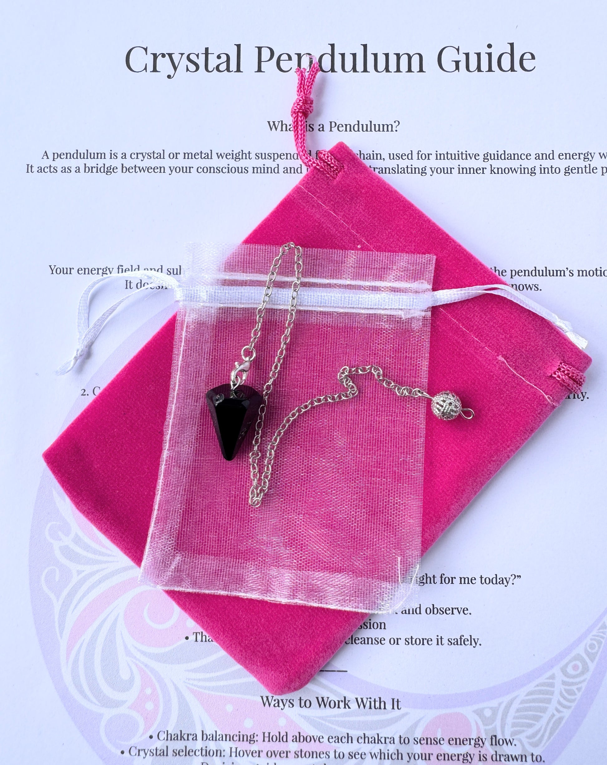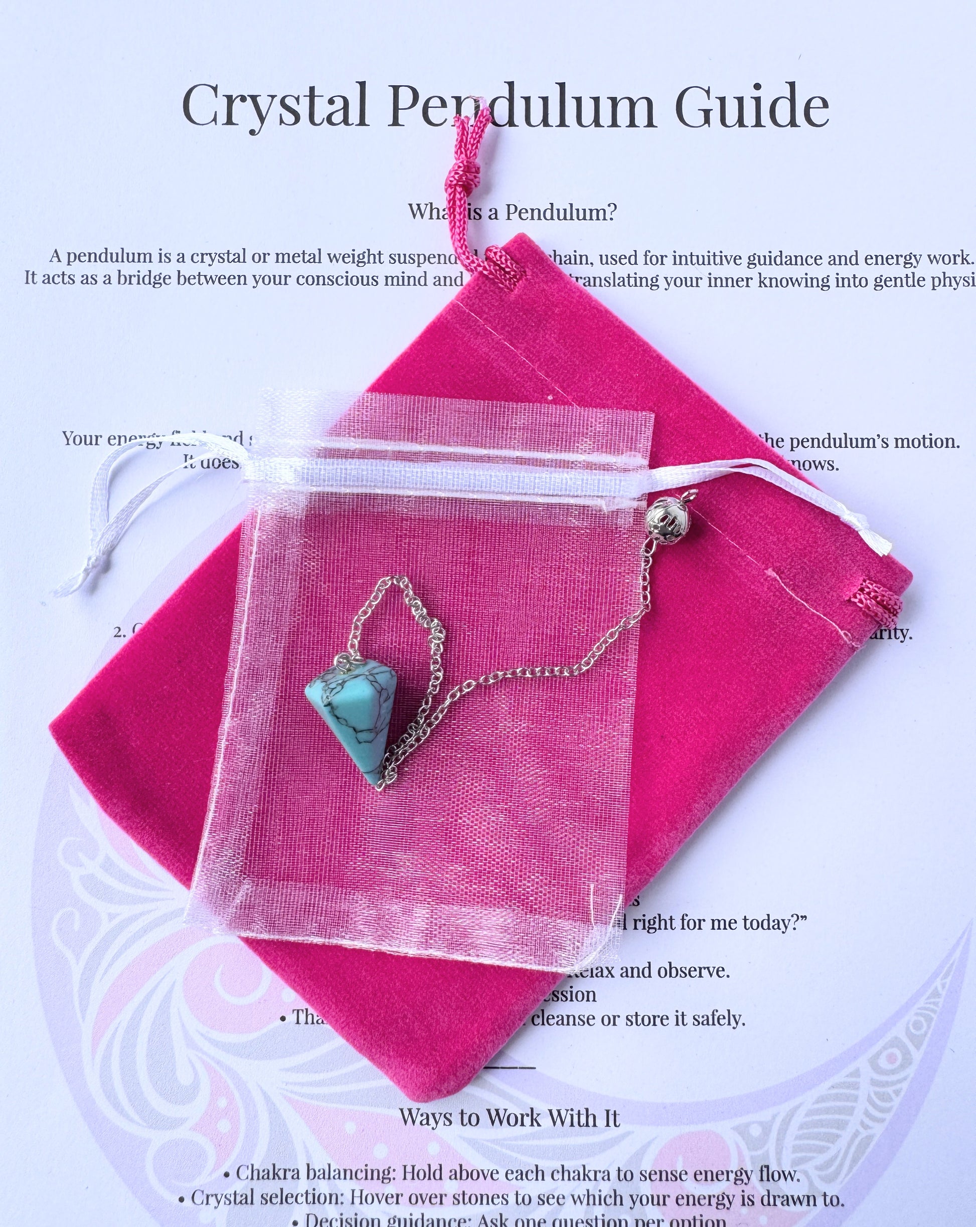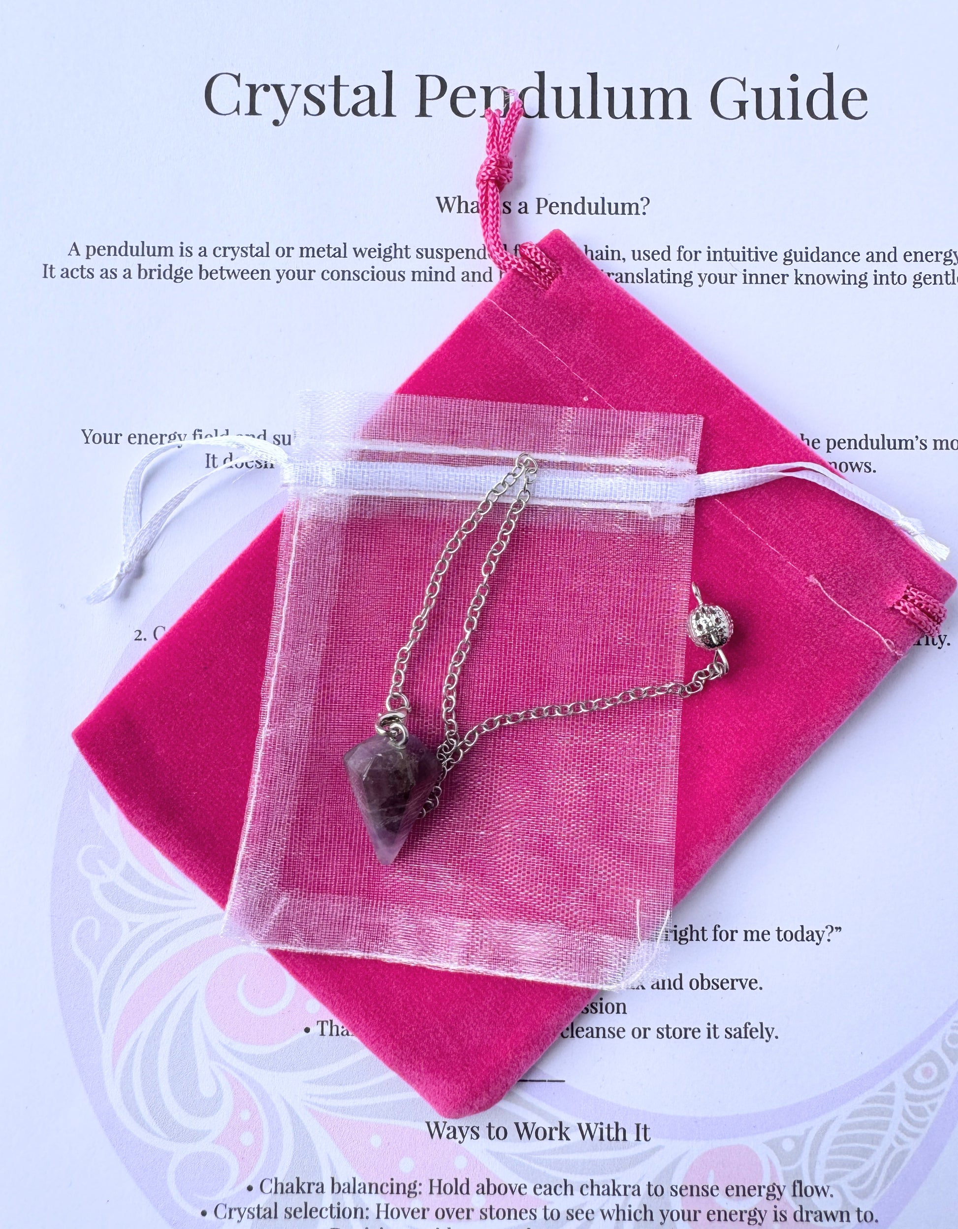 Explore our selection of hexagonal-shaped crystal pendulums, thoughtfully accompanied by a pouch and detailed instructions card. These elegant divination tools offer both aesthetic appeal and practical guidance. Whether you're new to pendulum dowsing or a seasoned practitioner, our comprehensive set ensures a seamless and enlightening experience.