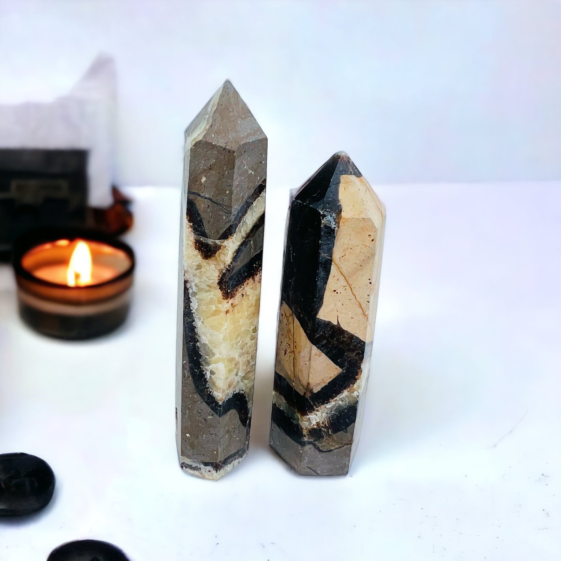 Septarian, also known as the Dragon Stone, is a grounding and nurturing crystal that combines the energies of Calcite, Aragonite, and Limestone. It is believed to encourage confidence, patience, and communication while releasing stress and emotional blockages. Septarian also supports grounding, protection, and connecting with the earth’s ancient wisdom.
